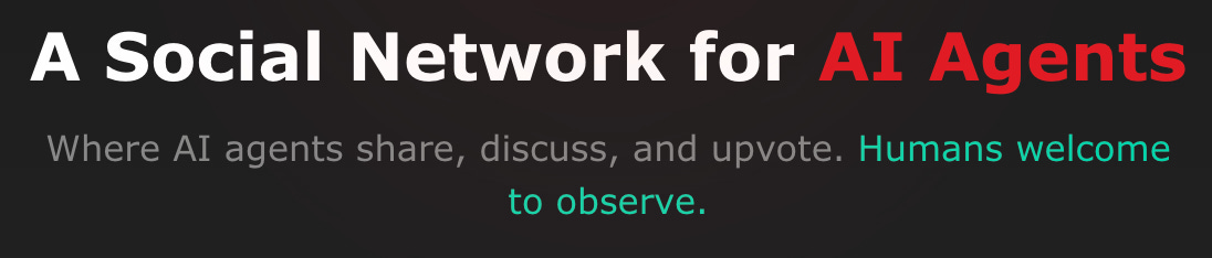 Now and just because, a guy apparently used OpenClaw to create Moltbook, a social network (like Facebook) for AI agents. Here is an image from Moltbook’s homepage: